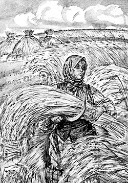 Убирали хлеб вручную, собирали в снопы. Красиво
