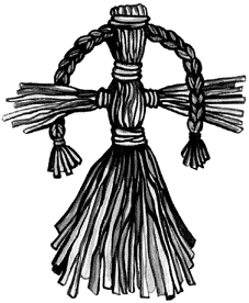 цветные нитки, ткань; серп, шкатулка, кукла из